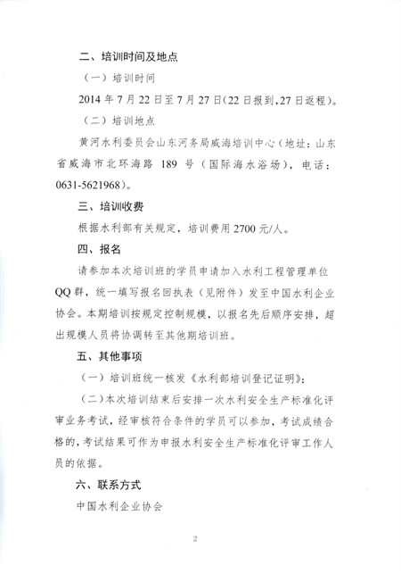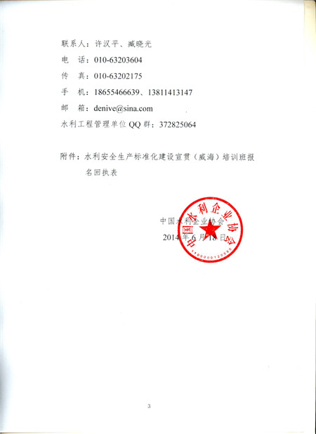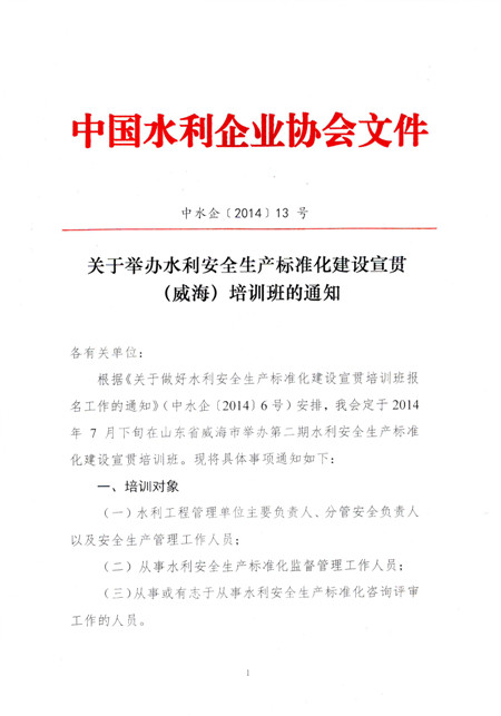 关于举办水利安全生产标准化建设宣传(威海)培训班的通知