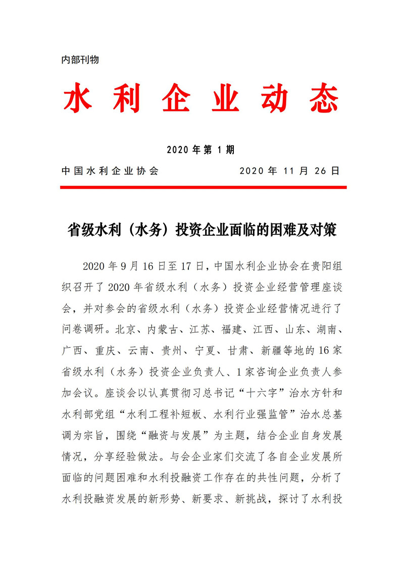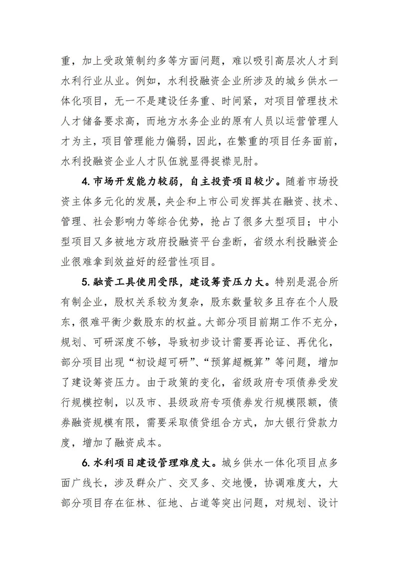 水利企业动态第1期—省级水利(水务)投资企业面临的困难及对策