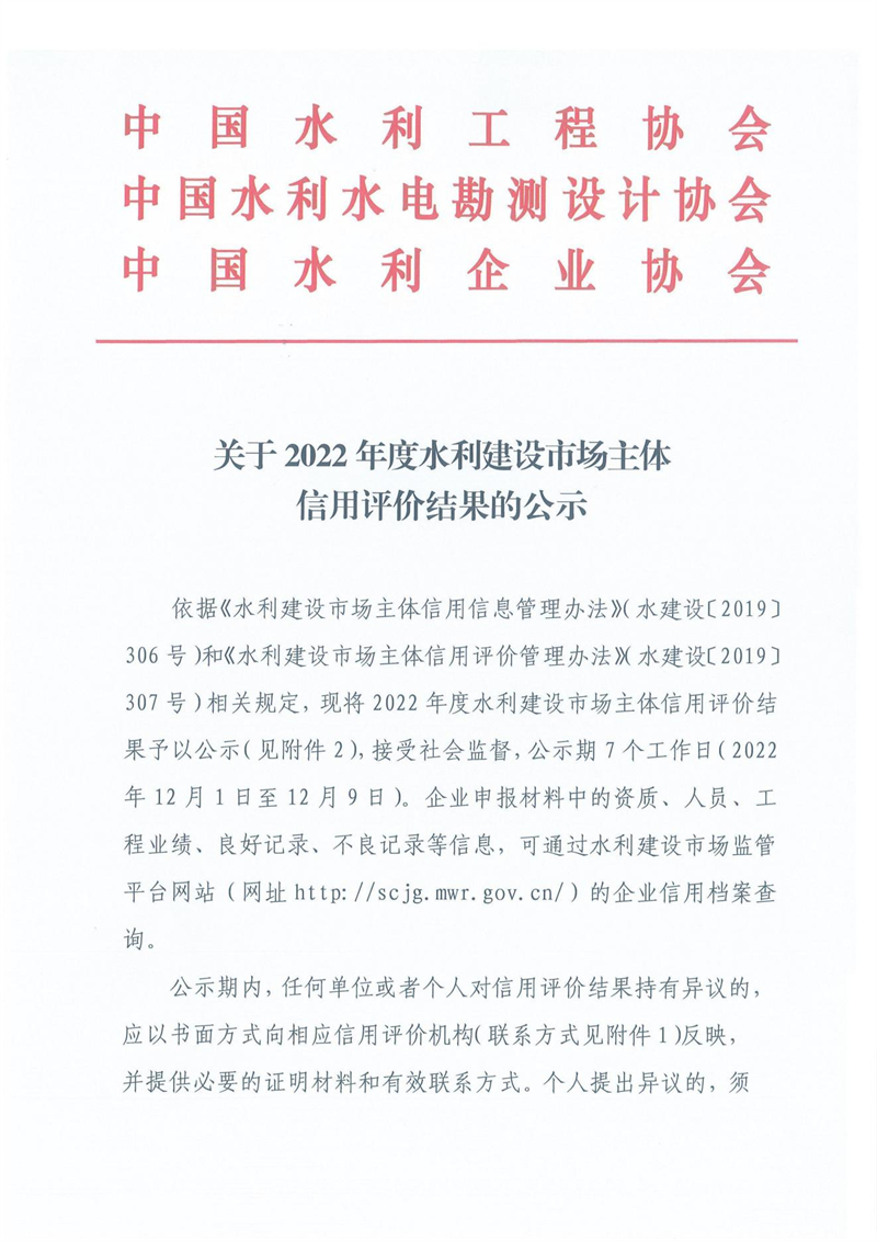 关于2022年度水利建设市场主体信用评价结果的公示.pdf