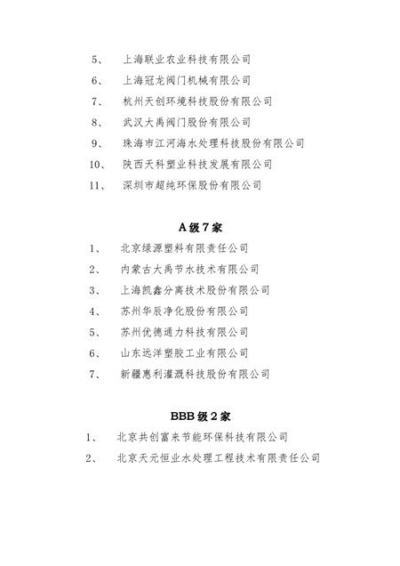 关于2016年节水与水处理企业信用评价结果的公告