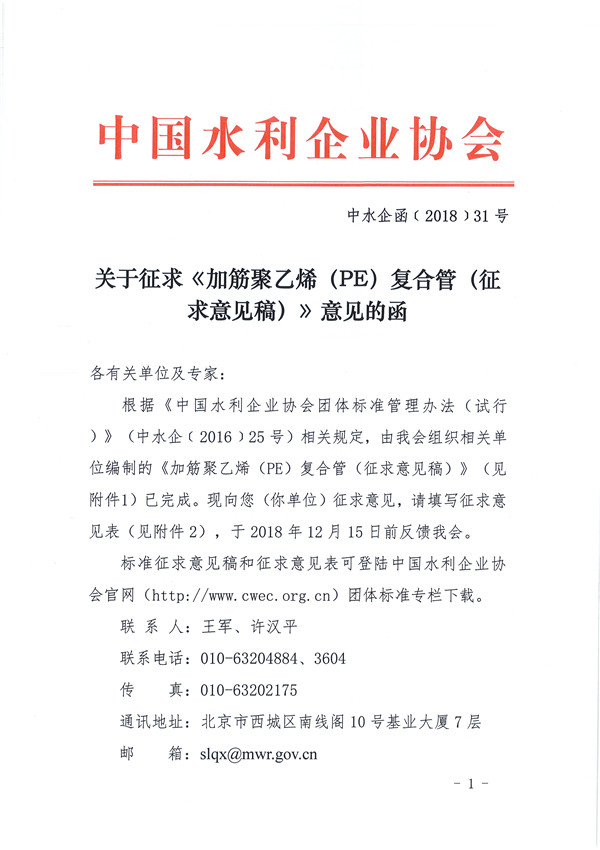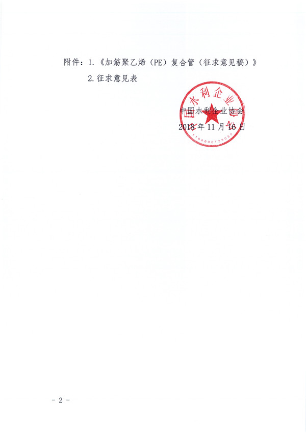 关于征求《加筋聚乙烯(PE)复合管(征求意见稿)》意见的函