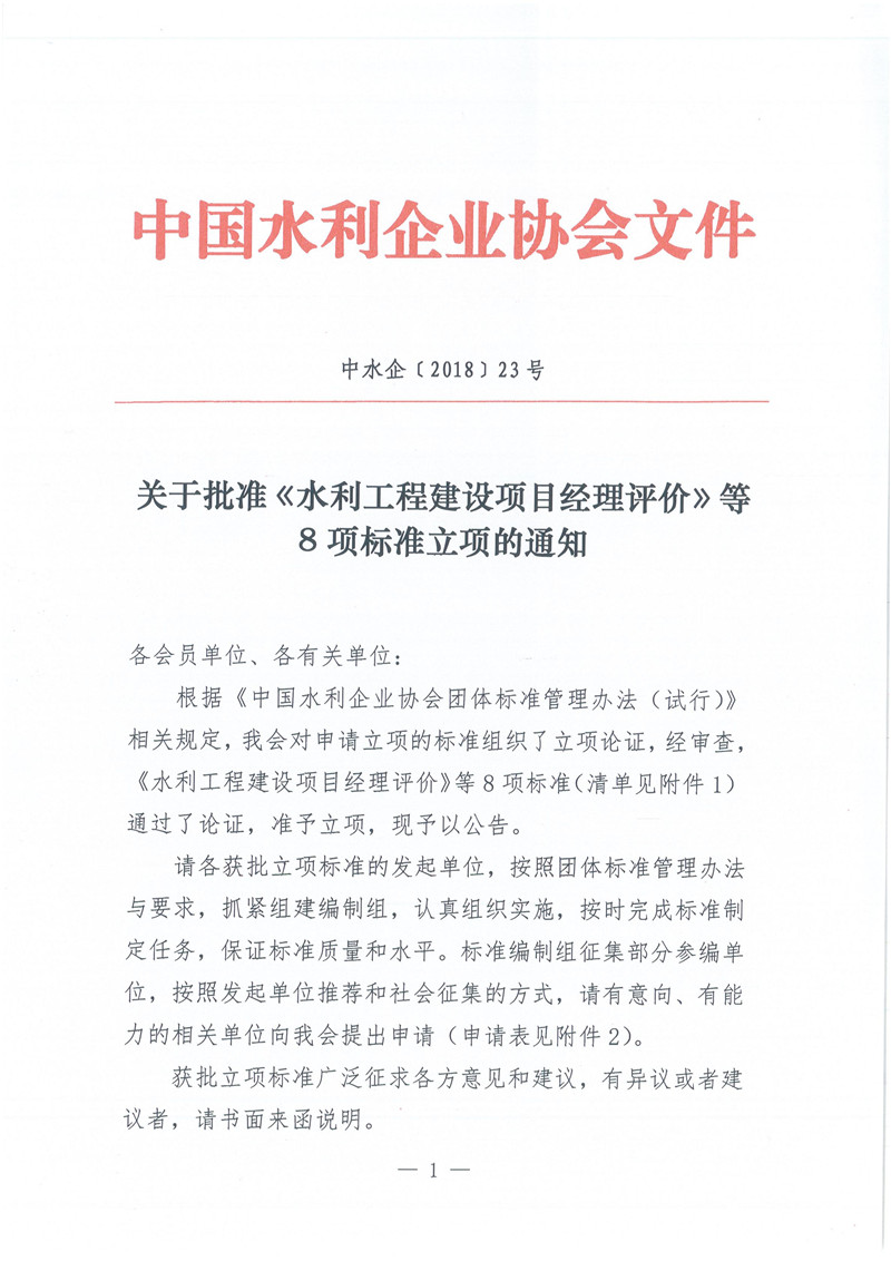 关于批准《水利工程建设项目经理评价》等8项标准立项的通知