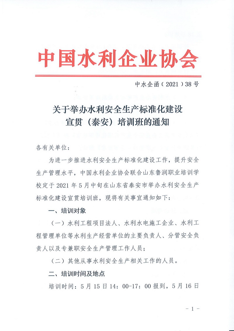 关于举办水利安全生产标准化建设宣贯(泰安)培训班的通知
