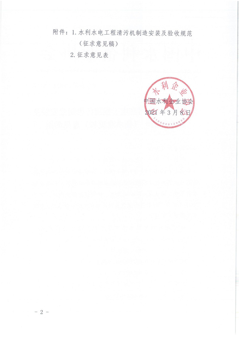 关于征求《水利水电工程清污机制造安装及验收规范》(征求意见稿)意见的函