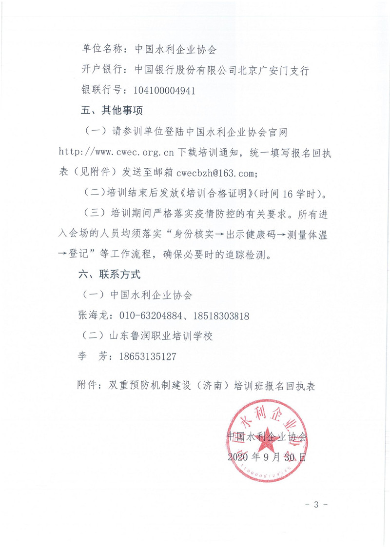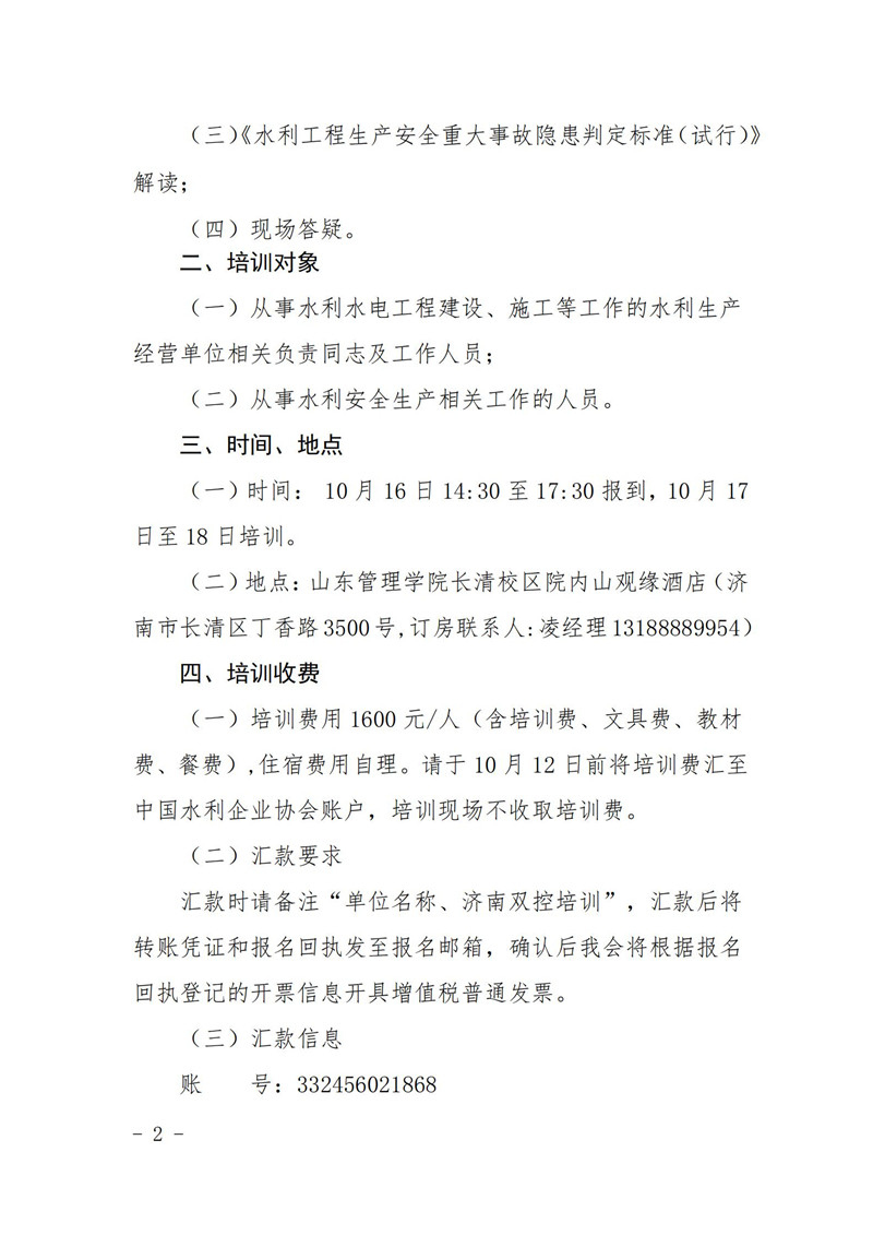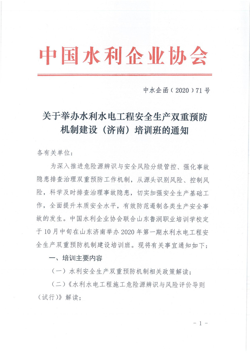 关于举办水利水电工程安全生产双重预防机制建设(济南)培训班的通知
