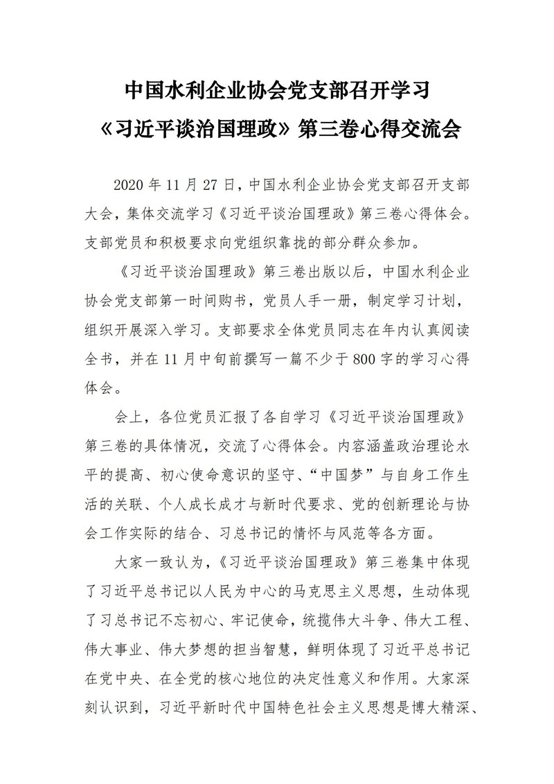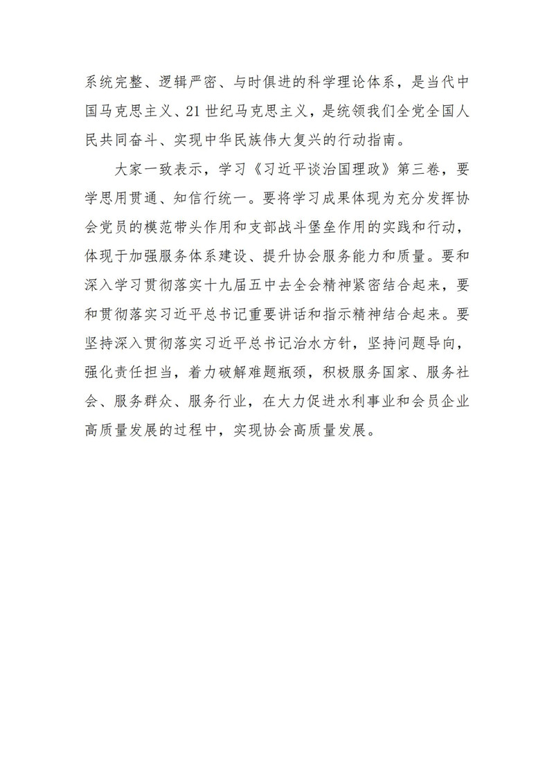 中国水利企业协会党支部召开学习《习近平谈治国理政》第三卷心得交流会